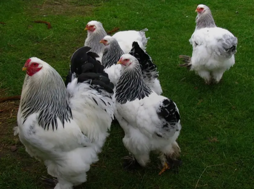 The gentle giants of the poultry world, Light Brahmas have soft white feathers with black accents and feathered legs. Cold-hardy, kid-friendly, and steady egg layers, they make an ideal choice for backyard keepers.